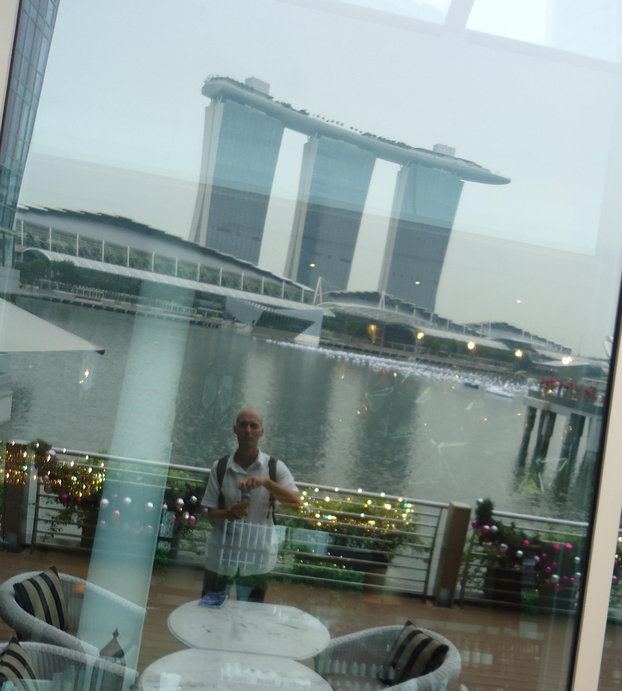 3. Tjek. Skibbet i baggrunden, dér oppe på de 3 skyskrabere og helt rigtigt. En arkitekt der vist skulle have været sømand. Ovenpå er der pools og luxus en mas. Den slags er Singapore fuld af.