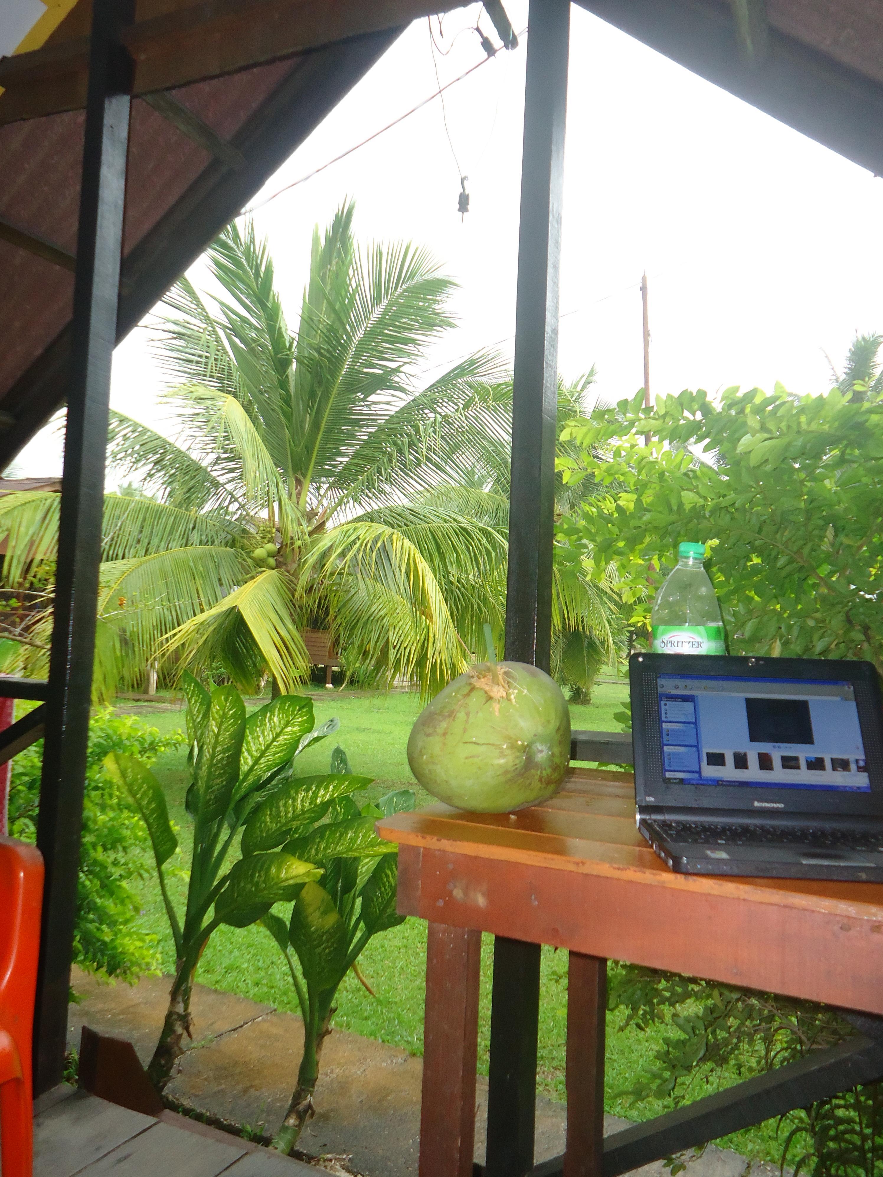 Bild: Og der sidder man så, ved en malaysisk strand. I sin egen hytte og drikker en kold kokosnød. Tjek.