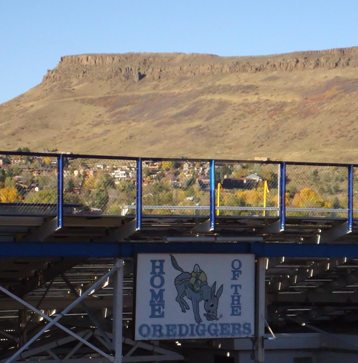 Vi bor jo i midt-west-USA og det kan ses. Der er aktid referencer til Indianere, cowboy'dere og guldminer. I byen Golden hedder det lokale football-hold eg. orediggers (ovenover). Og mining er stadig en stor uddannelse der. Meget autentisk.