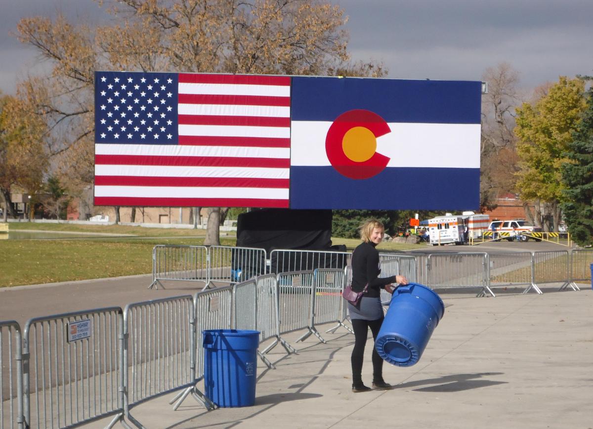 Obama besøger jævnligt Colorado for at vise sit fine ansigt og highjacke stemmer. Vi melder os selvfølgelig frivilligt og bliver sat til at lave crowd-control og smække de rigtige mennesker ind på de rigtige steder.