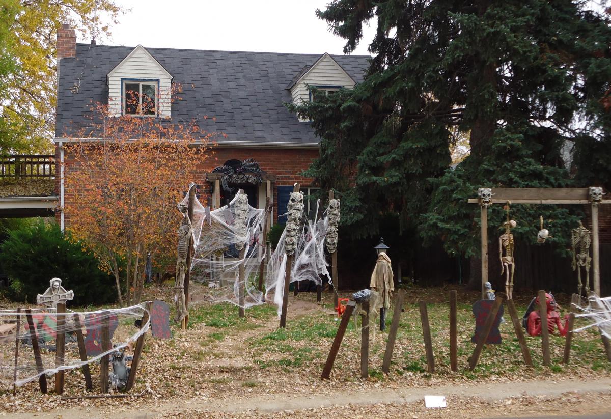 Det er de vilde halloweenhaver vi støder fra flere uger inden dagen. Og der er kostumer til alle, Også hunde. Da vi er på bar på dagen er alle klædt ud og på tv ser man et stort cirkus af udklædte værter og spas.  De kan altså noget de Amerikanere. Vores fastelavn når dem ikke til sokkeholderne.