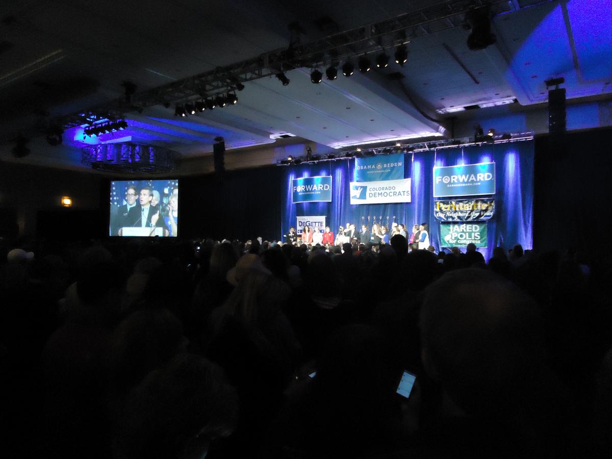 og på alle fronter. Det er en fantastisk følelse at stå med Demkraternes i en kæmpe sal og se de gode resultater dukke op på skærmen afbrudt af lidt taler fra Borgmester, guvernører og kampagnefolk. Og der bliver festet, drukket og danset - præcis som det skal være.